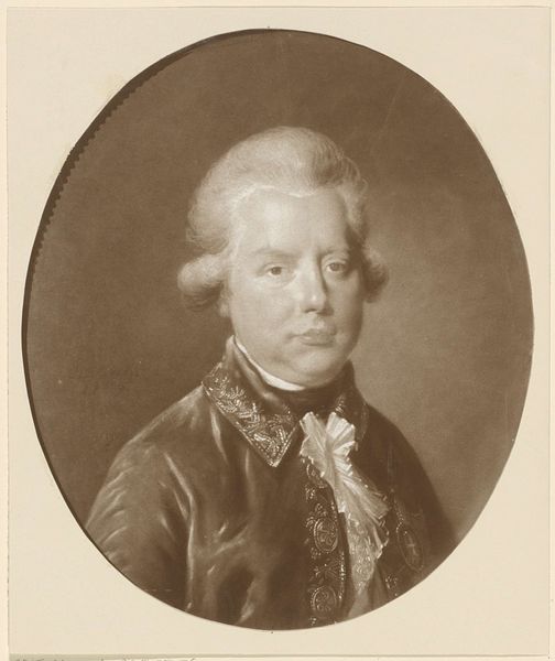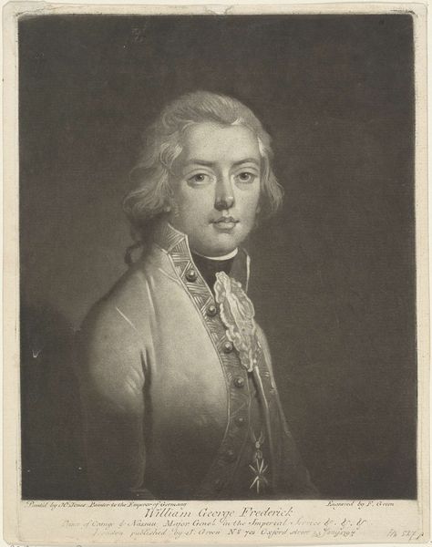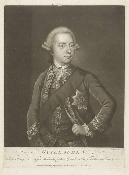 Charles Howard Hodges produced this portrait of Karel van Brunswijk-Wolfenbuttel, probably around the late 18th century, using the technique of mezzotint. It's an image deeply embedded in the social and political structures of its time. Consider the visual codes at play. The elaborate wig, the ornate medal, and the formal attire all signify status and power, reflecting the hierarchical society of the late 1700s. This was a period defined by aristocratic privilege and rigid social stratification. As a mezzotint, this portrait would have been relatively accessible, suggesting an effort to disseminate the image of the ruling class, reinforcing their authority through visual representation. To fully understand this work, we can research the Duchy of Brunswick-Wolfenbuttel, its rulers, and its relationship to other European powers. How did the institutions of monarchy shape artistic production and consumption? The meaning of this portrait, like all art, is contingent on its social and institutional context, something we, as historians, strive to uncover.