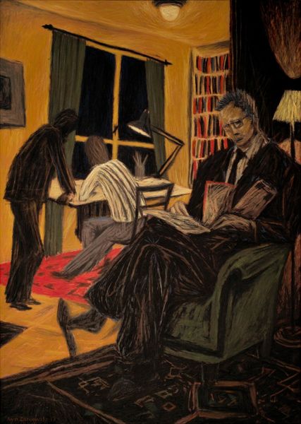 Iwo Zaniewski created this painting, "Blue Evening", with pastels. It shows a house and the people within, at leisure. The house, however, seems to be a house of art. The question of who gets to make art, and whose vision is privileged, is at the heart of institutional critique. Zaniewski paints a painter painting a house. The painting on the easel stands as a symbol of artistic creation and representation, but also of the art market, its institutions, and its values. The figures are consumed by the process of art making but also by the culture that surrounds it. To fully appreciate Zaniewski’s painting, we need to look at the history of art institutions. Exhibition catalogues, gallery records, and artist biographies can reveal a great deal about the social conditions that shaped Zaniewski's work.