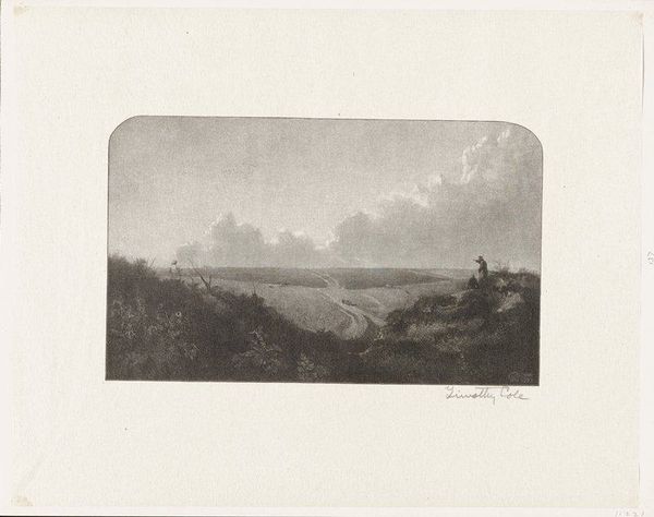Jan Vrolijk created this print, “Ruiter in Hollands rivierlandschap” or “Horseman in a Dutch River Landscape”, using etching in the late 19th century. During this period, the Netherlands saw rapid industrialization and urbanization which led artists to reflect on the changing relationship between people and the land. Vrolijk’s quiet and subtle etching depicts a solitary rider crossing a flat, open landscape. The horse and rider are small figures beneath the wide horizon line, almost fading into the environment. This emphasizes the vastness of the Dutch landscape, and perhaps evokes a sense of insignificance or impermanence. It's difficult to tell from the etching, but I can't help but wonder about the rider’s gender and social class. Are they working or traveling? What narratives are embedded in their journey? The stark contrast between the dark foreground and the light, airy sky creates a moody atmosphere. We are drawn into the personal experience of the lone traveler amidst this natural scenery. In his subtle and emotional rendering of a humble landscape, Vrolijk encourages us to reflect on our own place within the natural world.
