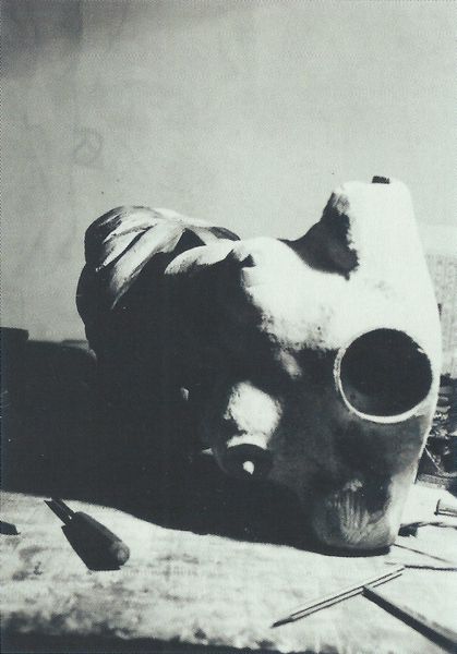 This untitled photograph was made by Arsen Savadov. There’s a lot going on, but it's all rendered in monochrome: two people, one with a trumpet sticking out of their bum, a bunch of rubble, and some sort of wheat sculpture on a plinth! Savadov's use of photography here feels less about capturing a perfect image and more about documenting a performance. The composition is chaotic, almost like a snapshot of a bizarre, impromptu ritual. It has a rawness that makes you feel like you're stumbling upon something secret and maybe a bit dangerous. It reminds me of some of Paul McCarthy's performance work, where the body becomes a site of irreverent humor and social critique. Art doesn't always have to make sense, right? It's more about the questions it provokes and the feelings it stirs. This piece definitely does that for me.