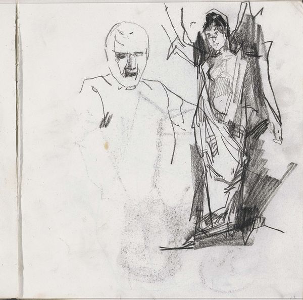 Curator: Here we have "Mannenhoofd, in profiel," or "Head of a Man, in Profile," a pencil drawing attributed to Isaac Israels, dating roughly from 1875 to 1934. Editor: It feels… tentative. Almost ghostly. The man seems to fade into the blankness of the paper. Curator: That's interesting. Let's consider the technique. Note the incredibly loose, almost frenetic, application of the pencil. The figure is constructed from a web of lines, some darker and more defined, others barely there at all. The hat seems particularly solid against the wispy rendering of the body. Editor: To me, this resonates with the disenfranchisement felt after the Industrial Revolution. The indistinct body, consumed with labor. A nameless face amongst many... We see that the sitter's features are obscured by shadow and hurried, perhaps careless linework. His very presence is undermined. Curator: I understand what you're saying about social commentary. But couldn't we also read this through the lens of Impressionism? Consider Israels’s engagement with capturing fleeting moments, the ephemeral nature of perception itself. Editor: It can certainly be both, of course, especially given that the timeframe places the drawing well within those revolutionary moments of both artistic style and societal change. And perhaps it's the absence of defining detail that speaks loudest—the artist allowing space for us, the viewers, to impose our own narratives. The drawing’s emptiness, in itself, is suggestive. Curator: The stark simplicity of the composition adds to the sense of incompleteness, almost as though we are intruding upon a private moment of reflection. The choice to use pencil, and a seemingly unsharpened one at that, enhances the textural dimension. Editor: A portrait imbued with subtle melancholy and societal critique, reflecting on a period of vast, often turbulent transformation. It challenges our notion of what makes a portrait and compels us to look beyond surface representations. Curator: It's interesting how such an unfinished sketch can be so deeply resonant, don't you think? Editor: Indeed. A fragment that somehow encapsulates a broader cultural feeling.