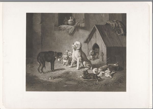Frederick Bacon’s print, "Dash, Hector, Nero, & A Lory," reflects the 19th-century British fascination with domestic animals as symbols of status and companionship. During this period, dog breeds were carefully cultivated and became visual markers of class and taste, much like fine furniture or clothing. Here, we see the dogs posed almost as members of the family, each with its own distinct character and place within the household hierarchy, with the Lory off to the side, eating. It's interesting to consider how these animals were perceived and treated in comparison to other marginalized groups in society. While these dogs enjoy comfort and privilege, many humans at the time were subject to harsh living conditions and social inequalities. Bacon invites us to reflect on the emotional bonds we form with animals, and the ways in which these relationships mirror and challenge our understanding of social roles and hierarchies.