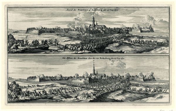 This print, "Afslaan van de Franse aanval op Aardenburg, 1672," now in the Rijksmuseum, was made by an anonymous artist. It likely utilized the etching process, where lines are incised into a metal plate, likely copper, with acid. Ink is then applied, and the surface wiped clean, leaving ink only in the etched lines. The plate is then pressed onto paper, transferring the image. Consider the labor involved in its production. From the skilled artisan creating the image, to the press operators printing potentially hundreds of impressions, each print represents hours of meticulous work. The resulting images would have been widely distributed, bringing news of contemporary events to a broad audience. This allowed the dissemination of images and information to become a burgeoning industry unto itself. So, even a seemingly straightforward historical depiction like this one has deep connections to the wider social and economic context in which it was made.