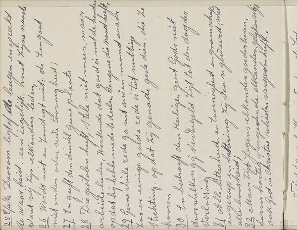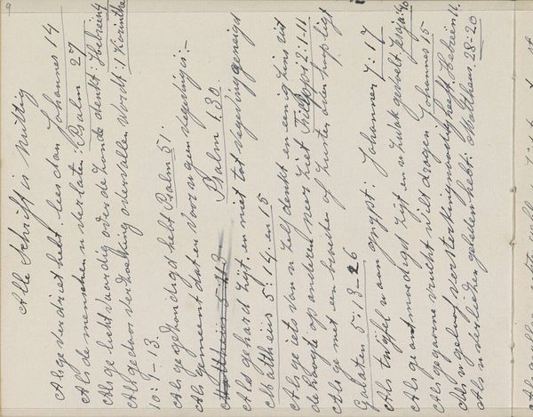 This handwritten page of biblical verses in Dutch was created by Marie Jordan in 1927. Its existence raises questions about the role of faith and personal interpretation during a period of significant social change in the Netherlands. The early 20th century saw increased secularization and new theological debates challenging traditional religious beliefs. Was Jordan creating this document for personal reflection, or as part of a wider religious movement? The act of copying and annotating scripture suggests a desire to engage directly with religious texts, potentially resisting the interpretations offered by established religious institutions. To fully understand the context of this piece, we could research the religious landscape of the Netherlands in the 1920s, looking for the rise of particular religious movements. We might investigate the role of women in these movements, and analyze the content of the verses themselves. The meaning of this artwork is contingent on its social and institutional context.
