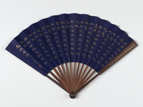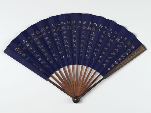 This is a fan painting called "Yama uba and Kintaro" by Kawanabe Kyōsai, made in Japan in the 19th century. The fan's surface offers a unique ground for Kyōsai's dynamic composition. The ribs create an underlying structure, against which the figures of Yama uba and Kintaro are rendered with fluid brushstrokes. Note how Kyōsai uses the fan's shape to frame the scene, drawing our eyes to the interplay between the figures and the subtle gradations of ink wash. The artist uses the negative space, punctuated only by a faint moon, which not only balances the composition but also invites contemplation. This interplay between form and void is characteristic of East Asian art, reflecting broader philosophical concerns. The artist engages with semiotic systems, inviting the viewer to decode the narrative embedded within the brushstrokes.