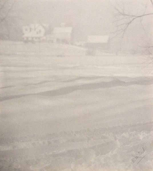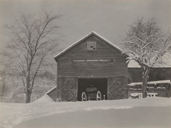 William B. Post created this photograph, Wintry Weather, using gelatin silver printing. The blanketing snow transforms the familiar scene of a house and barn into a landscape of stark contrasts. Note the road cutting through the snow, a path between two worlds. The road motif, as seen in works from ancient Roman roads to 19th-century Romantic paintings, often symbolizes life's journey, progress, or pilgrimage. In medieval art, roads are frequently associated with pilgrimage, reflecting a spiritual quest. Here, the snow-laden road evokes a sense of solitude and introspection. It prompts one to reflect on how such symbols are embedded in our collective consciousness. Consider the emotional weight of this image, the somber tones, and the way the scene is both familiar and isolating. This is the power of images engaging us on a subconscious level. This reflects the cyclical nature of symbols, constantly resurfacing.