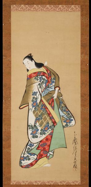 Kitagawa Utamaro's ‘Standing Prostitute and Kamuro,’ is painted with ink and color on paper, following the traditional Japanese Ukiyo-e style of woodblock printing and painting. The application of ink, pigments, and the absorbency of paper, all influence the soft, flowing lines, and delicate color gradations that define the figures. Traditional Japanese painting techniques are evident in the meticulous details, intricate patterns on the kimonos, and careful rendering of facial expressions. Utamaro’s artistic skill lies in his ability to capture the sensuality and elegance of his subjects. The social context of the artwork is deeply rooted in Edo-period Japan, where courtesans held a unique position in society. They were celebrated for their beauty, wit, and artistic talents. Utamaro's depiction offers a glimpse into the lives of these women, while also subtly commenting on the social dynamics, labor and class distinctions of the time.