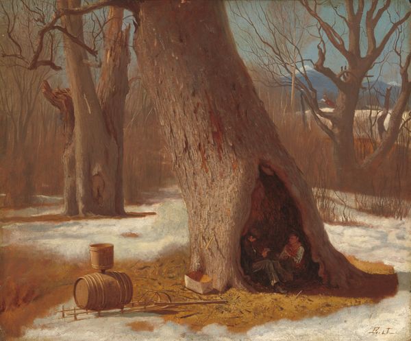 Vilhelm Kyhn created this oil-on-canvas landscape with a winter motif. The atmospheric painting can be read in relation to the development of national Romanticism in 19th-century Denmark. As a professor at the Royal Danish Academy of Fine Arts, Kyhn occupied an institutional position of power in the art world. Simultaneously, he criticized the academy's exhibition policies, helping to establish alternative venues. This winter landscape, bathed in twilight, exemplifies a recurrent theme in national Romanticism: the beauty of the Danish countryside. In the 1800s, this focus was deployed to cultivate a sense of shared national identity. But who got to participate in this vision? Here, a horse-drawn sleigh moves along a snow-covered path, suggesting an idyllic scene. However, such sleigh rides would have only been accessible to the upper classes. To understand this painting more fully, we can consult sources from the period, such as estate inventories, to reveal whose experiences were reflected – or excluded – in visions of national identity. Ultimately, the meaning of art is always contingent on social and institutional context.