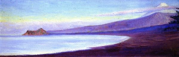 Editor: Here we have "The Sea at the Mouth of the Ebro," a 1922 watercolor by M.C. Escher. It’s deceptively simple, almost minimalist, but the washes of color are so evocative. What do you see in this piece? Curator: I see Escher engaging with a long history of landscape painting, but twisting it to explore his own anxieties about representation and place. Consider the Ebro delta: a site of constant transformation, of shifting sands and contested territories. His choice of watercolor, a traditionally "feminine" medium, further complicates the traditionally masculine domain of landscape art. How might his identity as a Dutch artist working in Spain inform his perspective? Editor: So, you’re saying his identity and the historical context of the landscape itself are important to consider? I wouldn’t have thought about that. Curator: Absolutely. The subtle colors, the hazy rendering – these aren't just aesthetic choices. They hint at the instability of both the land and the act of seeing itself. Post-Impressionism sought a more subjective way to express an external world; do you think this is apparent here? Editor: It’s true, the colors aren't quite realistic, almost dreamlike. And the horizon line is blurred, almost hesitant. I never considered the potential for a subversive meaning. Curator: Exactly. The “Sea at the Mouth of the Ebro” challenges our notions of objective representation. Escher offers a deeply personal and politically nuanced engagement with a landscape constantly in flux, hinting at deeper issues of displacement and identity through something seemingly calm. Editor: This makes me want to delve much deeper into his landscape works! Thank you, I will definitely be looking at Escher with new eyes now. Curator: Indeed, art always opens our mind when related with its historic environment.