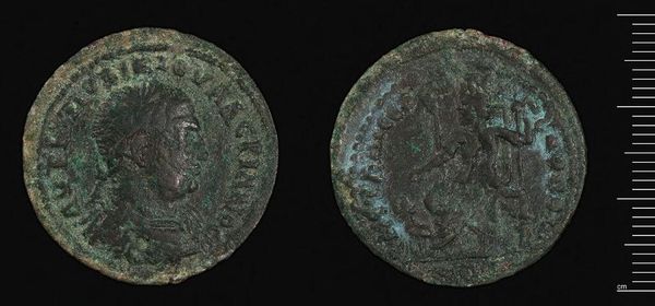 Editor: Here we have a coin of Claudius II Gothicus, currently housed at the Harvard Art Museums. It's fascinating to hold something so old, you know? What strikes me is its weathered appearance, like it’s carrying whispers of history. What do you see in it? Curator: Whispers indeed! It’s like a tiny, time-worn face staring back at us from the Roman Empire. For me, coins like this aren't just currency; they're propaganda, carefully crafted to project power and legitimacy. Look at the portrait of Claudius, those radiate crown. It spoke volumes to the people handling it daily. What story does it tell you? Editor: It feels almost…fragile, but powerful too. I never thought a coin could say so much! Curator: Exactly! Art in miniature, history in your palm. It makes you wonder about all the hands it passed through, doesn't it?