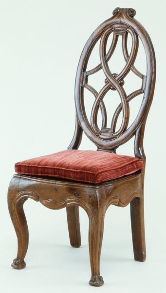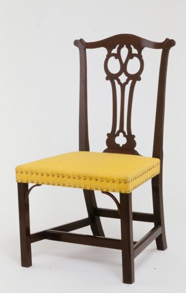 Editor: So this wooden chair, called a "Lyre-back Sheraton side chair," is from around 1800. What stands out is how delicate the design feels, especially that lyre shape in the back. It's quite different from furniture today! What do you see in this piece? Curator: Indeed! That lyre, a stringed musical instrument, acts as a potent symbol here. What does it evoke for you? Editor: Music, of course! And maybe a sense of refinement, or a connection to the arts. Curator: Precisely! In Neoclassical design, the lyre connects to ancient Greece and Rome. Music and poetry were vital parts of classical education and ideals. Notice how the chair back transposes the lyre into an open framework, simultaneously supporting your back while conjuring an active experience of "seeing" sound. This isn’t just a chair; it’s a statement about values and cultural aspirations. It also refers to harmony, order, and beauty that appealed to that period. Think about how the owner might have wanted to project themselves by owning such a symbolic piece. Editor: That's fascinating. It's amazing how much meaning can be packed into something seemingly simple like a chair. Curator: Objects like these tell stories beyond their function, whispering narratives of cultural memory and continuity. When we look, we are connecting across centuries. Editor: I'll definitely think about furniture differently now. Thanks for sharing this insightful context. Curator: And I in turn have been reminded how enduring symbols remain powerful across time and cultures.