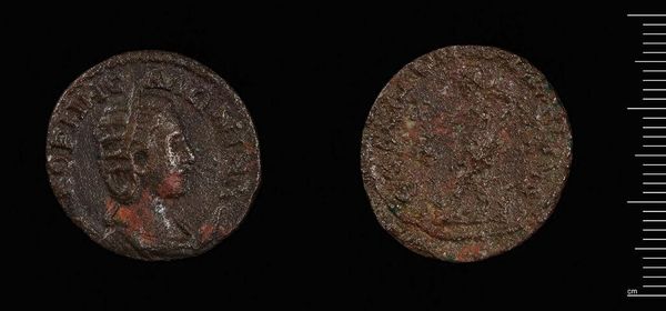 Editor: Here we have an Antoninianus coin of Gallienus. It's striking how much history is captured in such a small, worn object. What significance do you see in this ancient currency? Curator: Coins are potent symbols. Beyond monetary value, consider the imagery and its cultural message. What figures are depicted, and what stories might they tell about the era's values and beliefs? This becomes a window into a past civilization. Editor: I see, so the images carry layered meaning. Curator: Exactly. The emperor’s portrait, the deities, the inscriptions – they all contribute to a carefully constructed narrative. What emotions are evoked by these symbols? Do they project power, prosperity, or perhaps something else entirely? Editor: It really makes you think about how we use images to communicate even today. Curator: Indeed. It's a fascinating example of how images maintain cultural memory and continuity.