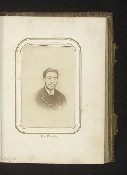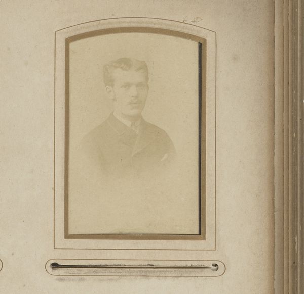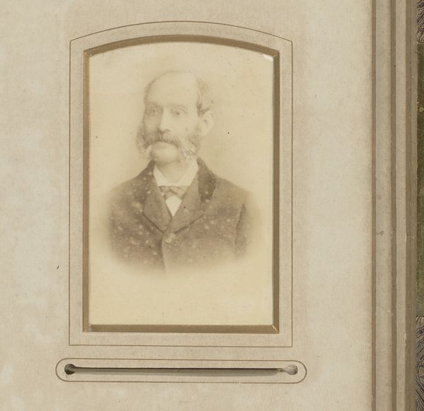 Editor: Here we have "Portret van een man"– Portrait of a Man – an albumen print, dating from sometime between 1859 and 1898, by George Lodewijk Mulder. It’s sepia toned, a touch faded...there's an air of solemnity about it, don't you think? What do you see when you look at it? Curator: I see a moment suspended in time. I wonder about his story, what he hoped for. Photography in that era was a weighty affair, literally and figuratively. Posing wasn't a quick snap; it was a deliberate act, imbued with significance. Look at the stiffness in his posture; what do you suppose he was trying to convey? Dignity? Respectability? Editor: Maybe a bit of both? It's interesting how much we project onto these images. Were most portraits in this time period formal or more artistic? Curator: It was a fascinating dance, wasn't it? Between wanting to capture reality and striving for artistry. Realism was taking hold, but the impulse to ennoble, to idealize, that's a persistent current in portraiture. I can almost hear the faint hiss of chemicals and the click of the shutter. Each portrait, I imagine, became a tangible piece of remembrance, an exploration of the ephemeral nature of existence itself. I would suppose that, while being seated or not the subject of a conversation, it may not had been quite stimulating for this character's soul. What do you think? Editor: Definitely makes me appreciate a good candid photo! I learned to consider these older photos as stories, not just static images. Curator: Exactly. They are ghostly vessels, carrying echoes across the years. I learned also the sense of mortality from such an image, and that art may be the truest human expression to endure longer than ourselves.