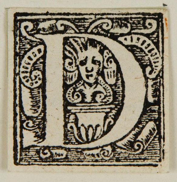 Curator: There's something powerful about the Capital A in this anonymous print held in the Harvard Art Museums. Immediately, I'm struck by the starkness of it all. It feels almost primal, doesn't it? Editor: Yes, primal in the sense that typography helped democratize texts and ideas. The heavy black ink and bold geometric shape give it such authority, and yet the floral interior softens that. Curator: Exactly, it's a fascinating tension. It's as if the letter itself is a garden overgrown, a wild starting point. Maybe it reflects the messy, complex roots of knowledge itself? Editor: Perhaps, but it's also important to remember that initial capitals like this were often part of larger printed works, intended to signal importance, maybe even class and wealth. Curator: I can see that. Still, I prefer to think of this A as a portal. A doorway to imagination where every story begins. Editor: I suppose it depends on how you read the history of access. Anyway, it's certainly quite the letter. Curator: Indeed, a potent symbol to ponder.