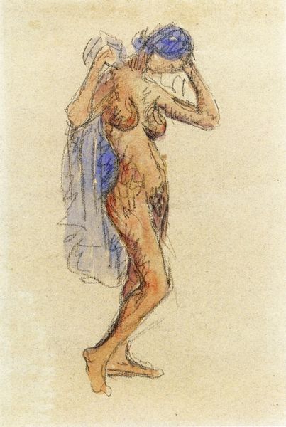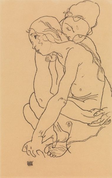 This watercolor and pencil drawing was created by Auguste Rodin. It depicts two figures embracing, a motif resonating through art history from ancient Greek sculptures to Renaissance paintings. The act of embracing has long been a symbol of love, reconciliation, and unity, yet it also carries connotations of struggle and conflict. Think of Jacob wrestling with the angel—a moment of profound spiritual struggle depicted through physical grappling, the embrace becoming a metaphor for inner conflict. Here, Rodin's figures seem caught in a similar tension, their limbs intertwined, suggesting both tenderness and a desperate clinging. The figures' embrace evokes a primal, emotional response. Our subconscious recognizes this gesture as a fundamental human experience. Through the ages, the embrace morphs, yet its underlying power persists, a testament to our shared emotional landscape. The emotional weight and cultural significance of this symbol has an enduring presence, a constant reinvention through the flow of time.