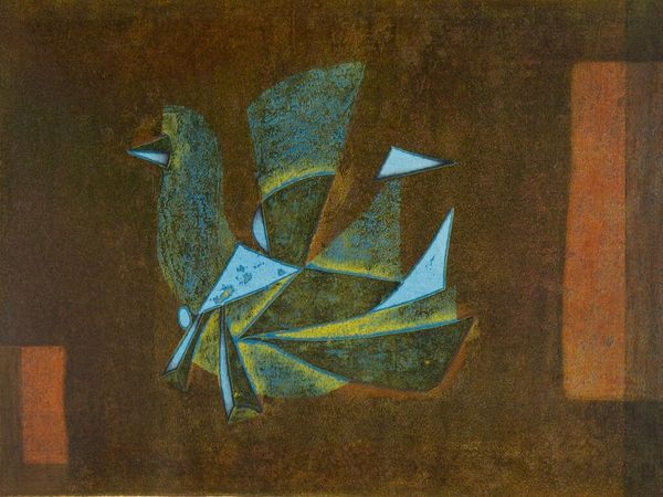 Editor: This is Juan Gris's "Fruit with Bowl," painted in 1926. The geometric shapes are immediately striking; the composition feels both grounded and dynamic at the same time. What underlying stories can be found in the forms used? Curator: A powerful distillation. The arrangement speaks to a deeply rooted cultural memory of offering. Fruits in bowls appear throughout art history representing earthly delights but also, the more profound theme of abundance and sacrifice. Gris uses Cubism to dissect this familiarity. Do you see how the bowl, though abstract, seems to project outwards? Editor: Yes, it almost feels like it's offering the fruit to the viewer, or maybe even overflowing. Curator: Exactly! The geometric dissection mirrors a questioning. Are these simply objects, or do they represent a deeper promise, a hope? The symbolic weight of fruit, traditionally linked to fertility and temptation, persists despite the fractured depiction. Gris almost presents the idea of deconstruction for understanding, a re-assembling of cultural narratives. What resonates most with you? Editor: It is fascinating how, even fragmented, the fruits and bowl carry these ancient associations. Maybe the fragmentation acknowledges how traditions change. Thanks, it gives so much more food for thought! Curator: Indeed, food for thought. Reflect on how the old ideas find new shapes and voices across time. Symbolism provides fertile ground for discovery.