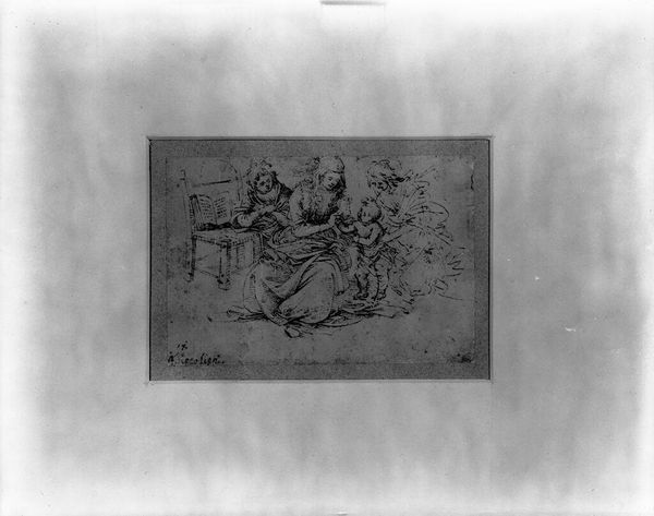 Curator: Before us, we have Louis-Oscar Roty's 1895 relief sculpture "In Praise of Mariani Coca-Wine", a rather striking Art Nouveau piece. Editor: It feels almost eerie, a monochrome vision advertising... coca wine? It certainly projects a specific mood – not entirely celebratory, despite its function. Curator: Precisely. The medal presents a fascinating dichotomy in its composition. One side depicts a semi-nude nymph, or perhaps a mother figure, offering a drink to a child. Editor: And the other side blatantly advertises the wine with floral elements and bold typography: “Health to the Strong, Life to the Weak.” It's a potent visual encapsulation of late 19th-century attitudes toward health, medicine, and perhaps, moral laxity around nascent pharmaceutical culture. Curator: I agree; the allegory speaks volumes about the perceived benefits and the societal endorsement of such elixirs. Note how Roty employs the visual language of classical sculpture and relief work here, and infuses it with decorative elements that would define the emerging Art Nouveau aesthetic, such as flowing text embedded into floral motifs. Editor: Let’s not forget what ‘coca’ implies here. This wasn’t just some innocent wine; it was laced with cocaine! That idyllic maternal scene takes on a far more complicated dimension. We might even see the nymph as administering an early form of opiate medicine—sanctioned harm under the guise of care. Curator: Yes, and to appreciate this, you really have to deconstruct how the classical and modern interplay in this context. The clean, refined lines versus the decadent indulgence of its implicit claims. Editor: And I'd challenge the reading that coca-wine may only have been perceived as ‘decadent.’ I would propose that it was viewed as "empowering" to workers during an era when societal pressures to produce and work constantly often came at the cost of individual well-being. Its popularity came with an endorsement from society for that very reason. Curator: Indeed. Roty encapsulates complex societal narratives into what would appear a seemingly simple advertising piece. A great testament to decoding visual information on all its levels. Editor: A potent reminder that the visual arts always reflect—and participate in—the ethical quandaries of their time.