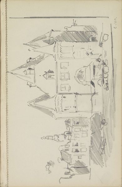 Cornelis Vreedenburgh captured Piazza de Ferrari in Genoa with pencil on paper, creating a study that emphasizes structure and form. The drawing presents a world rendered in layered lines and tonal values. Vreedenburgh constructs the architectural space using hatching techniques, setting up a visual dialogue between solidity and ethereality. Note the archway to the left, its solid form anchored by darker, more deliberate strokes, juxtaposed against the figures, whose fleeting presence is conveyed through lighter, sketchier lines. The composition suggests a semiotic interplay. The static architecture stands as a signifier of enduring structure, while the dynamic human figures become fleeting signifiers of urban life. Vreedenburgh does not merely depict a scene, but interprets it, inviting us to reflect on the relationship between permanence and transience. Vreedenburgh’s work reminds us that drawing is not just about representation; it is a form of thinking through visual means.