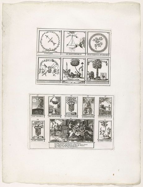 These ‘Decoraties 100-105 te Den Haag’, from 1747, are anonymous engravings, rich with symbols reflecting the political and cultural aspirations of their time. The lion, a recurring symbol, stands defiant, bearing a sword and crowned with foliage. It is a clear evocation of power, strength, and protection of one's nation, resonating with ancient heraldic traditions across Europe. We find echoes of this lion in medieval bestiaries and royal emblems, embodying vigilance and courage. Consider the image of a figure seated on a rainbow, bearing flowers; this blends classical allegory with a sense of hope and promise, like Iris, the Greek goddess of the rainbow. The rainbow itself symbolizes a bridge between the earthly and divine, a connection frequently employed in religious and mythological art. It is an emotional response that taps into our collective yearning for harmony. These symbols demonstrate a continuity of cultural memory, resurfacing and evolving, revealing our shared history and collective psyche.