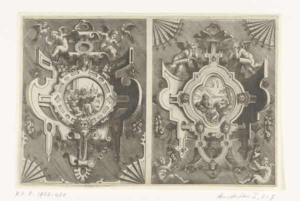 Editor: Here we have Pieter van der Heyden's engraving from 1566, "De evangelist Johannes in cartouche," housed at the Rijksmuseum. I’m struck by how ornate it is! What does this cartouche design, overflowing with symbols, tell us? Curator: Precisely! The dense imagery points to the complex relationship between religion, power, and visual culture during the Reformation. Consider the figure of John the Evangelist – the depiction itself can be seen as a powerful act, affirming a particular theological perspective amidst widespread religious upheaval and iconoclasm. Who has the right to represent faith? How? These are the questions embedded in the work. Editor: So, the choice to depict John, and the way he's depicted, is a statement? Curator: Absolutely. Notice the traditional symbols – the eagle, his association with divine inspiration. But also, the context. Cartouches were often used to frame important declarations. How does framing John this way lend authority? What are the social implications of visually reinforcing religious figures during periods of unrest and change? Editor: It's like using art to take a stand during conflict. Curator: Exactly! This image becomes part of the visual vocabulary shaping identity, belief, and social discourse. What do you see here, then, with new eyes? Editor: Now I see it's not just decoration; it’s a bold statement about religious identity. It makes you wonder about the artist's motivations. Curator: And also the social context surrounding those choices, the ways in which art played a central role in negotiating identity. It provides a crucial glimpse into the intersection of faith, politics, and artistic expression of the time.