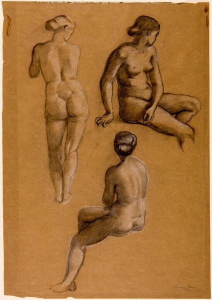 Curator: Here we have an untitled drawing by O. Louis Guglielmi. It depicts two women, seemingly in conversation, rendered in charcoal and pencil on paper. It's quite striking. What are your initial thoughts? Editor: The first thing that grabs me is the somber, almost confrontational tone. The figure on the right especially. There's a weight in her gaze and stance. And yet the looseness of the sketch softens that. It makes me wonder about the unseen narrative, the relationship dynamic. Curator: That tension between the figures, amplified by Guglielmi's choice of medium and loose lines, can be seen as a recurring element within Guglielmi’s social commentaries on the world and its marginalized people, don’t you think? It can easily be assumed, although untitled, that these "women in conservation" share something, such as thoughts on a shared crisis or worry. Editor: Definitely. Guglielmi often uses figuration to explore the anxieties and realities of urban life, so viewing this piece through that lens unlocks further questions about the subject's role and what these figures might represent during the depicted era. It would also be beneficial to dive deeper into the context that generated that title; whose voice attributed that? Curator: Absolutely. Attributions can significantly alter interpretations. Regardless, the work itself raises complex social and ethical issues, particularly concerning the representation of women, class and even potential trauma during unstable times, I imagine. I also find interesting to note that they almost seem stuck with strange elongated, rubbery, extremities that make me question their social freedom and their true status. Editor: And how those realities intersect to form the identities of the individuals portrayed. It encourages us to really unpack the dynamics of looking, the power dynamics inherent in who gets represented, and how. In the grand scheme of things, is that kind of freedom achievable for everyone in every context? It’s almost confrontational how little freedom they get given Guglielmi’s technical freedom. Curator: Agreed, which allows this otherwise simple sketch to raise challenging questions and speak volumes about our current socio-political climate. Thank you for your input, I will now consider this on display. Editor: Thank you! Analyzing these interactions always creates space for transformative potential.