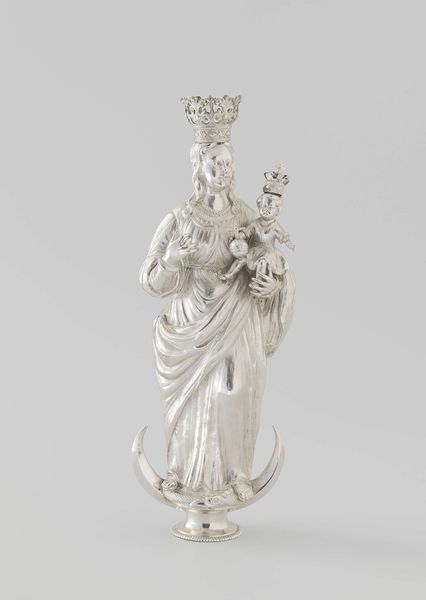 Editor: Here we have “Guanyin with a Child,” a porcelain sculpture by He Chaozong, likely crafted between 1750 and 1800. Its smooth, white surface gives it a really serene quality. What symbols do you recognize in this sculpture? Curator: Indeed, the serenity emanates from a deep well of cultural symbolism. Guanyin herself, often depicted holding a child, is revered as the Bodhisattva of compassion. This iconography taps into the powerful, almost universal archetype of the Madonna and Child. Consider the echoes of nurturing and protection… what feelings are evoked? Editor: I feel a sense of peace and motherly love, definitely. It's interesting that you bring up the Madonna – I wouldn't immediately connect the two, given their different cultural contexts. Curator: Precisely, the comparison invites us to look closer. While the context differs, both figures serve as visual representations of empathy and refuge. Notice how Guanyin's posture – gentle, with slightly downcast eyes – reinforces her role as a compassionate caregiver. What might the artist be trying to convey? Editor: Maybe the universality of maternal love, regardless of religious or cultural background? Also, the smooth ceramic material itself adds to that sense of purity and calm. Curator: That's insightful! The choice of white porcelain also ties into specific cultural connotations of purity and enlightenment within Buddhism. So, what’s been revealed through our interpretation of visual cues? Editor: I’ve learned how to analyze a work of art based on what it symbolizes, and the emotions and ideas that cultural icons transmit over time. Curator: And understanding how enduring archetypes bridge diverse cultural expressions can open us to broader empathy and connection.