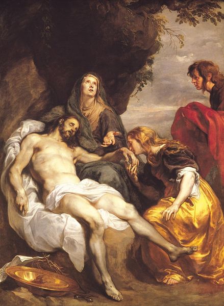 Curator: Here we have Jacob Jordaens' "The Mission of St. Peter," painted in 1617. Editor: What strikes me first is the overwhelming physicality of the figures; their bodies are so robust and illuminated, pushing forward against the stormy, chaotic sky. Curator: Absolutely. The dramatic lighting is a key component of the Baroque style. Note how Jordaens employs this light to spotlight St. Peter receiving his charge from Christ. Editor: Yes, there's a clear emphasis on Peter, framed centrally and holding the fish—a blatant symbol, isn’t it? I'm curious, how does this imagery function within a broader cultural narrative? Curator: Well, the fish symbolizes the souls he is meant to win over. It is an iconic representation that aligns St. Peter to the symbolic duty of leading Christ's church, echoing motifs found in early Christian art as a call to service and legacy. The history and emotion resonate profoundly with me. Editor: While I acknowledge the fish's symbolism and historical precedent, I find the intense focus on Peter’s form somewhat distracting. It dominates, to a point where it disrupts any subtle semiotic encoding in the pictorial narrative. Curator: But doesn't the emphasis on Peter’s physical strength suggest a spiritual fortitude? Jordaens may suggest that the emotional weight to face trials and convert people takes muscular action, creating both visual and spiritual significance for those seeking meaning across the centuries. Editor: I concede to the potential reading of fortitude represented, though it's still hard not to fixate on his physique. Yet it's precisely the inherent tension embedded within Jordaens’ stylistic choices that captures my imagination, initiating discussions centuries after its creation. Curator: Yes, its potency continues to generate discourse, a vital bridge across cultures and experiences.