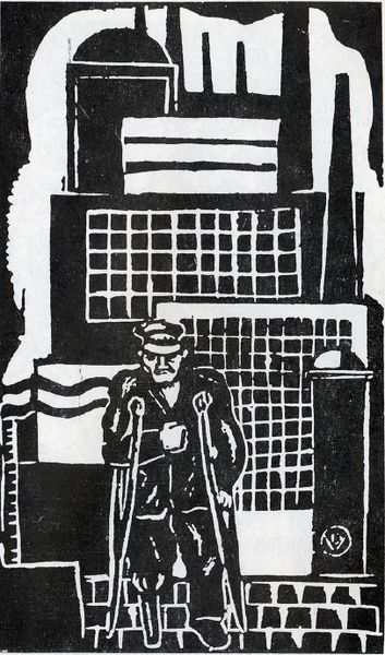 Endre Balint created this woodcut, titled "At Candle-light," during a period of immense political and social upheaval in Europe. Balint, a Hungarian Jewish artist, lived through both World Wars, shaping his art with themes of displacement, identity, and survival. This print is a window into Balint's emotional world, marked by the looming presence of historical events. The stark black and white contrast evokes the anxieties of the time, reflecting the dualities of light and darkness, hope and despair. The composition, with its fragmented figures and symbolic elements, suggests a world in disarray. Look at the faces staring out at us, bearing witness to the unfolding of history. Balint once stated, "Art is a form of resistance," encapsulating his commitment to addressing social and political issues through his work. "At Candle-light" serves as both a personal reflection and a broader commentary on the human condition amid conflict, reminding us of the importance of remembering and confronting the past.