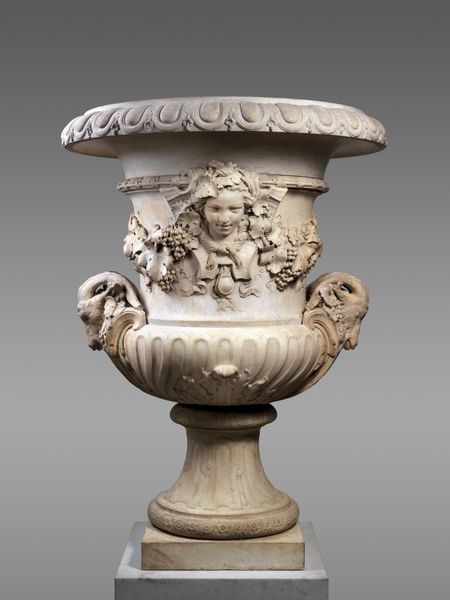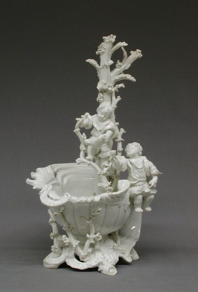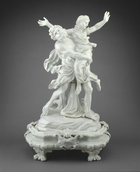 This is an 8-inch porcelain sculpture titled "Flora with Children" by Este. Imagine the artist, Este, working with the rigid medium of porcelain to evoke the soft, sensual forms of the human body, particularly that of a woman. Flora, the Roman goddess of springtime and flowers, is portrayed here, not as a powerful deity, but as an object of visual pleasure. Notice how she is partially nude, her body idealized, and her gaze averted, embodying classical ideals of beauty and femininity. The presence of children adds a layer of sentimentality, softening Flora's sensuality with connotations of motherhood and innocence. The sculpture provides a glimpse into how societal expectations of women were crafted and circulated through art. Consider how this sculpture, while seemingly innocuous, reinforces specific gender roles, and how, even today, these historical representations continue to shape our understanding of beauty and womanhood.