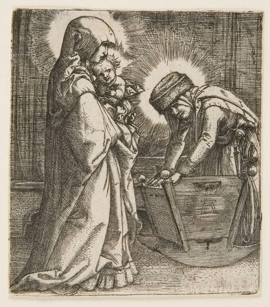 Editor: This small print, "Magnanamitas," by Hans Collaert the Elder, feels almost like a playing card, with this regal figure and her lion companion. What do you make of her serene expression and grand stature? Curator: Ah, Magnanimity! I see Collaert's work as a quiet invitation. She's a queen alright, but not one of boastful splendor. See how she clasps her hands, almost meditatively? The lion at her side isn't there to threaten, but to embody her inner strength. Editor: So it's not about outward power, but this internal…steadfastness? Curator: Precisely! Magnanimity is about having a great soul, capable of both great compassion and great courage. It's about finding the noble in the mundane. Editor: I guess I expected something flashier, but the subtlety is much more powerful. Curator: Indeed! It makes you wonder where you can find the great within yourself.