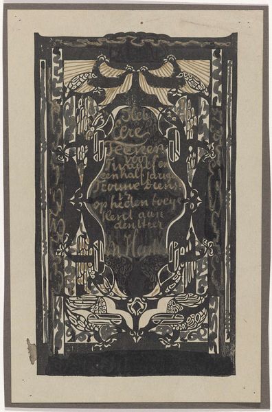 This is an advertisement by Mathieu Lauweriks, probably printed with a woodblock. It’s all blacks and whites, sharp and graphic. The letters feel cut, in a similar way to how you feel when you’re in the studio and you begin with a clear idea, but the material has its way of changing things. The text is set in the middle and surrounded by these highly ornamental shapes, like serpents or plants. If you look up close, you can see the texture and the grain of the woodblock coming through, but it is also softened by the choice of an off-white, creamy paper. I love the way the artist uses abstraction to get your attention, and makes you want to get close to the work. It feels similar to the work of Hilma af Klint in its use of symbols and spiritual themes. Ultimately, though, the beauty of art is in its openness—it invites us to bring our own experiences and interpretations.