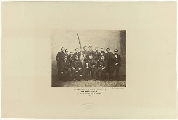 This group portrait of English military officers, including Major Pierre Louis Napoleon Cavagnari, was made by John Burke sometime in the late 19th century. The artwork is a photograph, a process that depends on the interaction of light and chemistry, capturing a specific moment in time. The material qualities of photography – the tones, the focus, the contrast – all contribute to its aesthetic. The photograph's sepia tone and soft focus evoke a sense of nostalgia, while its composition and arrangement of the figures convey a sense of formality and authority. Photography was, at this time, a technology closely tied to burgeoning capitalism and mass media; a tool for documentation, propaganda, and the dissemination of images. In its own way, this image encapsulates a moment in the history of empire-building, made possible by labor, technological advancement, and political will. The photograph, a medium often overlooked as “craft,” is revealed to be a crucial artifact of its time.