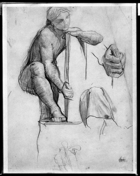 Editor: Here we have Pierre-Jean David d'Angers' sketch for a statue of Jean Racine. The lines are so fluid, giving the figure a real sense of movement, almost like he’s about to step off the pedestal. What strikes you most about this piece? Curator: It feels like a ghost of an idea, doesn't it? Racine, draped in classical garb, but caught in the act of creation. I’m fascinated by how d'Angers captures that fleeting moment of inspiration. It reminds me of lightning—a brief flash illuminating the landscape of the mind. What do you make of his expression? Editor: He seems thoughtful, perhaps even a bit troubled. Like he's wrestling with the words. Curator: Exactly! It's a glimpse into the creative process, a reminder that even the most eloquent artists face their demons. Thanks, I learned something new today. Editor: Me too! It's amazing how much emotion can be conveyed in a simple sketch.