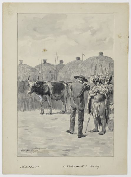 Editor: This is "Cows being watered", made in 1846 by Adolph Kittendorff as part of a children's book with Christian Winther and M. Rørbye. It’s a lithograph showing a young boy overseeing two cows at a watering trough. What immediately strikes me is how… ordinary the scene is. What do you see in it? Curator: It's seemingly a simple genre scene, yes, but it participates in a broader cultural conversation about the idealization of rural life in 19th-century Denmark. It evokes the public's sentimentality and an element of social control by illustrating an expected class structure in Danish society. The image naturalizes the child’s role, possibly as a serf in a field dominated by cattle. Where do you think such idealized depictions are most prominently found? Editor: I suppose you would see them in books and instructional material aimed at families and the middle class? Something teaching about virtues or the proper role for different individuals in the rural life? Curator: Precisely. These images, seemingly benign, play an active role in constructing and reinforcing societal norms. Look at the way the cows are positioned – almost as figures of prosperity against the background. The pastoral scene is idealized to project certain values. Is it an objective reality, do you think, or something manufactured? Editor: Certainly manufactured, especially when we consider it was intended for children, implying a sense of romanticism connected to the realities of farming. Were there opposing representations of rural life in art at that time? Curator: Absolutely. You find a counter-narrative in other artistic circles. They challenge these idealizations. But what is intriguing about "Cows being watered" is its dual existence: both a piece of art and a didactic tool. And its position as a common everyday activity that the general public identifies with, promoting these activities is socially desirable. Editor: I see. So, on the surface it’s a simple picture of rural life, but underneath, it’s doing work to shape how people perceive and value that life. Curator: Precisely. That intersection of art and social function makes it so interesting to examine from a historical point of view. Thank you for pointing that out! Editor: Thank you. I hadn’t considered how much it reveals about social values.