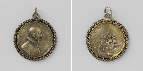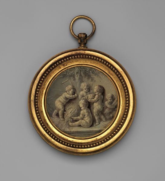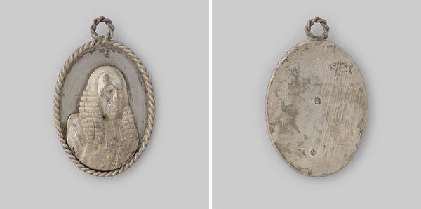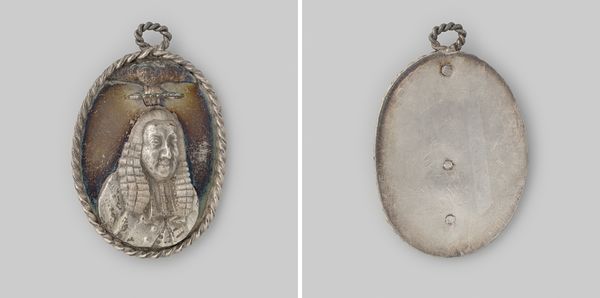 Curator: Let's discuss this piece titled "Portraits of Three Unknown Children" made sometime between 1862 and 1882. It is an early photographic portrait, currently housed at the Rijksmuseum. The work feels intensely personal yet distant because of its age and anonymous subjects. What strikes you most about it? Editor: It’s the framing, literally. The silver filigree setting enclosing these three tiny portraits gives it such a unique form. The triangular shape, how does that contribute to the overall feeling, do you think? Curator: Indeed, let’s consider the structure. The triptych arrangement is intriguing; observe how the oval portraits form an equilateral triangle, lending a sense of formal balance. Do you see any hierarchical relationship within the portrait composition? Editor: Well, the child at the apex feels more important or central because of the positioning. It draws the eye first and then downwards to the other two. Is it intended that the portraits are in a hierarchy? Curator: Perhaps. Now, observe the subjects. The limited grayscale palette emphasizes texture. Note how the subjects’ gazes intersect with ours, a visual triangulation mirrored by the outer structure. Does this formal repetition influence the viewer's interpretation? Editor: I think it invites me to consider each child's unique appearance but also their shared context. And looking at them, in the framing, it makes me wonder what the children were thinking or what the commissioner of this object was going to do with it. I would not have observed the pattern of gazes without you mentioning it. Curator: And that, precisely, is the beauty of formal analysis. We have moved beyond simple subject recognition towards decoding the internal mechanics of the piece. Editor: Thank you. I definitely understand a new way to look at photographic portraits and their formal design.