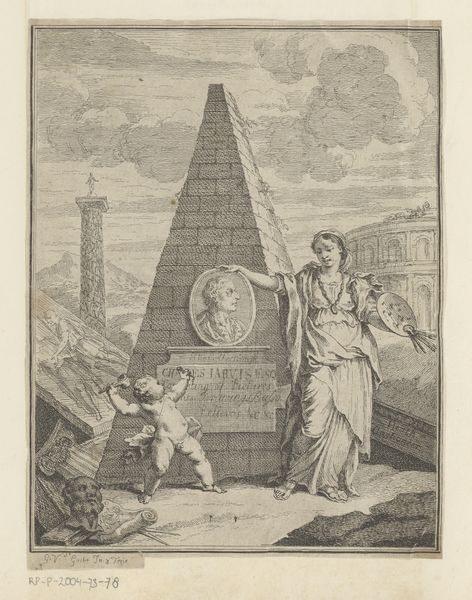 Editor: This etching, "Plate 8: Bertoldino, enraged by the croaking frogs, throws his strongbox into the fish pond, from \"Bertoldo, Bertoldino, and Cacasenno," was made between 1705 and 1715 by Giuseppe Maria Crespi. It strikes me as darkly humorous, watching this fellow heave his presumably valuable strongbox in what must be an act of utter frustration. What do you see in it? Curator: Well, isn't it a glorious spectacle of pure, unadulterated exasperation! Imagine – the din of those infernal frogs, driving a man to financial ruin just to achieve a moment's peace. It’s operatic in its absurdity! Crespi captures that almost cartoonish, over-the-top quality beautifully, don’t you think? This series speaks to the anxieties about class and wealth prevalent in the early 18th century through laughter, using exaggerated narratives, but this one feels like a raw nerve barely disguised. Do you catch that note? Editor: I hadn't thought of it that way. So, beyond just the humor, it’s perhaps critiquing… impulsive decision-making driven by stress among the upper class? Curator: Precisely! Or even more broadly, it whispers of the perils of succumbing to the chaos of the world around us. Sometimes, aren't we all tempted to chuck our own strongboxes into the nearest pond? And let's consider those frogs, symbols, perhaps, of all the petty annoyances that can collectively drive us mad. It tickles me to think about it. Editor: That’s a refreshing point of view, considering these themes are still resonant. Thank you. Curator: My pleasure! It’s artworks like these that remind us history is just human nature in a different costume, and sometimes, that costume involves a really, really bad day.
