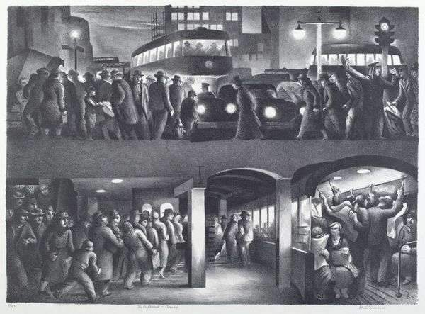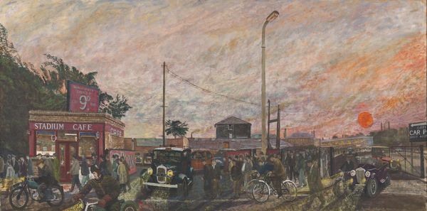 James Amos Porter created "Ticket-Taker at Griffith Stadium" using oil on canvas. In this piece, Porter captures a bustling scene outside a baseball stadium, likely during the mid-20th century, a time of significant social change and racial segregation in America. Note the clear division of labor and space within the composition. The black ticket-taker, dressed in white, stands prominently in the foreground, a literal gatekeeper. The white patrons stream past. This arrangement subtly underscores the racial dynamics of the era, reflecting the complex roles African Americans held in public life. Porter himself navigated a career as an artist and art historian during a time when opportunities for black artists were limited. His work often explores themes of identity, representation, and the African American experience. "Ticket-Taker" embodies a sense of place and human activity while speaking to broader societal issues. It invites us to reflect on who has access, who controls the entry, and how these dynamics shape our shared spaces.