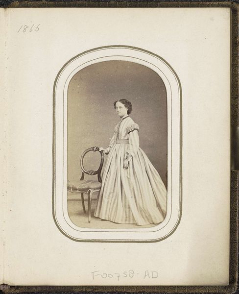 Curator: Before us is a photomontage by Mayer & Pierson, known as "Portrait of Eugénie, Empress of France, Wife of Napoleon III." The work, dating roughly from 1855 to 1865, uses a combination of photography, print, and daguerreotype techniques. Editor: The sepia tones and the almost hyper-realistic depiction create an interesting tension. Her presence feels both immediate and distanced, like a ghost from another century materialized right before our eyes. There's a fragility to her gaze, offset by the extravagance of the dress. Curator: Indeed. Think of the Second Empire’s fascination with constructing a specific image of femininity and power. This image, disseminated through print, reinforced ideals about the Empress as a symbol of French elegance and imperial strength. What narratives were actively suppressed or promoted through her depiction? Editor: Absolutely. The voluminous crinoline dress itself acts as a barrier, dictating her personal space and freedom. It embodies a prescribed role. Is she trapped by its splendor or empowered by it? Where does individual agency intersect with the political projection? Curator: Precisely. We can also analyze how the photomontage technique contributes. It was a novel way to craft celebrity portraits, suggesting a staged, constructed reality even then. Editor: A precursor to modern image manipulation, really. We see how early photography becomes a tool not just for documentation but for shaping perceptions. This highlights how power utilizes and controls these emergent technologies to sculpt ideologies. Curator: Exploring the politics behind the visual representation helps us critically assess not just artistic styles but also how images propagate and sustain larger societal structures and biases. Editor: Right, this image goes beyond the surface appeal. By scrutinizing the historical forces and considering gender and class dynamics at play, this photo becomes a window into how those dynamics persist today. Curator: Reflecting on it, it reminds me how portraiture always mediates between personal identity and public expectation, a fascinating tension for photography to capture, even then. Editor: And to me, it’s a poignant illustration of how, even when striving for permanence through art, we’re invariably shaped by the forces of our time.