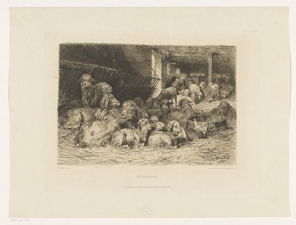 Emile Frédéric Salmon created this print, “Landweg bij avond met dorpelingen,” using a photogravure technique. This intaglio process, involving a copper plate, is notable for its ability to reproduce the tonal range of a photograph with remarkable fidelity. Look closely at the image, and you’ll notice the richness of texture, from the rough, earthy path to the soft, flowing garments of the villagers. Photogravure, in this context, moves beyond mere reproduction, becoming a medium for artistic expression itself. The process necessitates a skilled hand, transforming an image into a crafted object, bearing the marks of labor and time. What we see in the finished print is an intimate record of labor and everyday life. By focusing on photogravure's material and making process, we recognize that it is a labor-intensive process, which brings the work closer to the realm of craft. This challenges the traditional distinctions between fine art and more utilitarian forms of production.