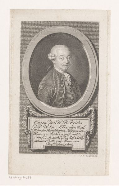 Editor: Here we have a work called "Portret van Charles Henri Hector d'Estaing," an engraving by Charles Etienne Gaucher from 1779. The precision and detail achieved with engraving are striking. What aspects of this piece grab your attention? Curator: Well, looking at the engraving itself, I see a convergence of labor, materiality, and social context. We have an image of aristocracy rendered through a very deliberate process of incising lines into a metal plate, a labor-intensive method. Editor: So you're saying the choice of engraving isn't just aesthetic? Curator: Precisely. Consider the historical context: engravings like this were a means of disseminating images and ideas, acting as a sort of early mass media. The very act of creating and distributing this portrait, a commodity, speaks to power dynamics. How many engravings would Gaucher have needed to sell, and to whom, to make ends meet? Editor: I hadn’t considered the economics of it. So, you're saying the *how* and *why* it was made is more significant than just who it depicts? Curator: The “who” is certainly connected. D'Estaing’s status fueled demand for images of him, driving production. This highlights a fascinating relationship between aristocratic patronage, artisan labor, and burgeoning consumer culture. Where did the copper come from to create the plate in the first place? What tools were involved? All those considerations open doors to understanding society at the time. Editor: I see it now – thinking about the materials and process tells us about power structures, class, and even global trade. Thank you, that really changes how I look at engravings now. Curator: Absolutely. By looking beyond the surface, the materiality of the art provides deep social insight.