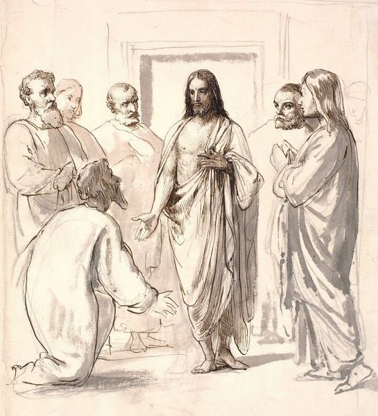 Nikolai Ge’s “What is Truth? Christ and Pilate” was likely made with oil paints, a medium that lends itself well to the dramatic lighting and emotive texture seen here. The handling of the paint itself contributes significantly to the artwork's meaning. Notice the rough, almost agitated brushwork, particularly in the figures' robes and the background wall. This isn't about smooth, flawless representation; it's about conveying a sense of unease, moral conflict, and perhaps even the social upheaval suggested by the biblical scene. Ge was engaging with a long tradition of history painting, yet he was also pushing against its conventions, and the painting's power comes not only from the biblical subject matter but also from the artist's willingness to use the materiality of paint to express complex emotions and ideas. This challenges any easy separation of craft and fine art.