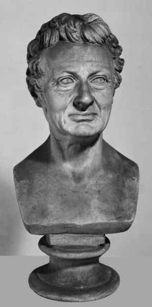 Curator: Before us stands H.W. Bissen's 1851 marble bust, "Botaniker og politiker J.F. Schouw," currently held at the SMK, Statens Museum for Kunst. Editor: Its stark stillness immediately strikes me; the unwavering gaze coupled with the cool, impersonal marble makes me think about permanence and its relationship to power. Curator: That's interesting, given the context of the artwork's time. This bust immortalizes J.F. Schouw, not only a renowned botanist, but also an influential political figure deeply embedded within the complexities of 19th-century Danish society. How do you see that playing out? Editor: The unflinching expression seems purposeful. Beyond just portraying an individual, Bissen seems to be solidifying Schouw's image as an enlightened man. Think about the Neoclassical style. The artist's choice to present Schouw in marble with smoothed-over skin evokes this sense of heroic leadership. This creates an association between Schouw's intellect and the state’s ideals. Curator: I agree that it certainly monumentalizes Schouw. But how does that symbolism speak to audiences today, understanding the historical context of scientific racism that blossomed from the same period? Editor: That’s an important question. The artwork asks the viewer to acknowledge Denmark's complicated history. Here, a botanist who likely participated in the study of natural “sciences” encounters the viewer as a person, now, confronting legacies of race and empire. It really demands scrutiny. Curator: Right. A bust created by a society with blindspots that have since been illuminated in modern-day discourses on identity. This piece offers us a chance to see how monuments become sites of active reckoning with the past. Editor: Absolutely. These iconic symbols and what they signify are never static. The meaning attached to that kind of image evolves, often carrying multiple sometimes-conflicting emotional loads.