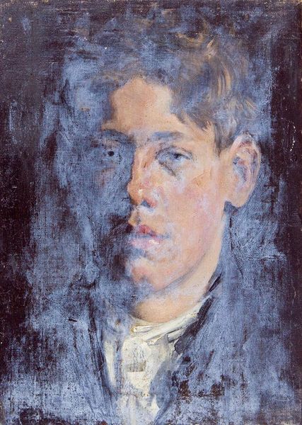 Editor: This is Denman Waldo Ross's "Profile Portrait of a Boy in Suit and Tie," housed here at the Harvard Art Museums. The brushwork is so soft, creating a real sense of introspection. What strikes you about the composition? Curator: The muted palette establishes a serene atmosphere, but consider how the diagonal of the jacket's lapel intersects with the gentle curve of the boy's cheek. It creates a subtle tension. What does that juxtaposition suggest to you? Editor: Perhaps a conflict between the formality of dress and youthful innocence? Curator: Precisely. Ross uses formal elements to communicate a complex narrative. Notice the play of light and shadow—how it models the form and directs our gaze. The way the subject is cropped also enhances the intimacy. Editor: I hadn’t considered the cropping before, but it does make me feel more connected to the figure. Curator: This piece exemplifies how formal analysis unlocks deeper meanings within a seemingly simple composition. Editor: Thank you. I'm starting to see how much the formal elements contribute to the overall impact.