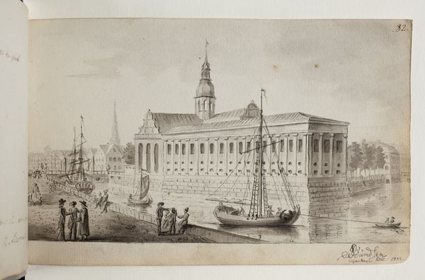 This print depicts Greenwich Hospital, but more than that, it embodies the mechanization of image production. It was made anonymously using etching, a process where lines are incised into a metal plate with acid, then inked and printed. What's interesting here is the industrialization inherent in this method. Unlike a unique drawing, etchings can be reproduced in large numbers, making images widely accessible. Consider the social implications. Greenwich Hospital, prominently featured, offered refuge to retired sailors – those who served England through maritime labor. The print, in turn, serves as a record of both place and the labor force connected to that place, through trade. Its distribution speaks to a burgeoning market for images, accessible to a wider public than ever before, reflective of shifting economies and evolving visual culture. It democratizes art, though always mediated by the labour involved in the production of both image and seafaring trade.