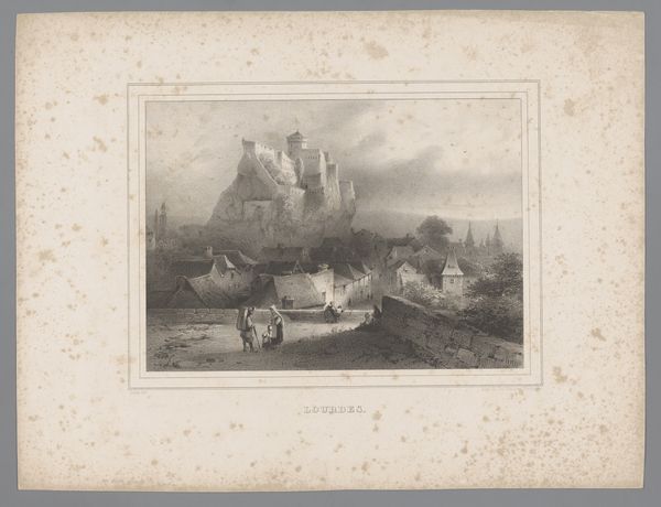 Paulus Lauters made this lithograph view of Visé. We see a scene of daily life in the town with a horse-drawn cart, workers on the docks, and buildings in the background. Lithography is a printing process using a stone or metal plate with a smooth surface. The artist applies an image with a greasy substance, then treats the plate so ink only sticks to the drawing. It's a printmaking technique that democratized image production in the 19th century. Lithography allowed for relatively quick reproduction, making art more accessible. This print captures a moment in time and reflects the growing urban landscape of the 19th century. The print's success relies on the artist's hand and the printer's skill, highlighting how the division of labor influences art's creation and distribution. Appreciating these aspects challenges the traditional view of art and sheds light on the wider social and economic context of its production.