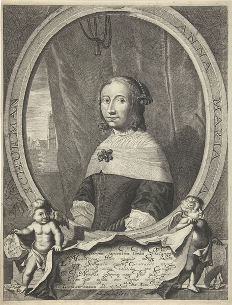 Adriaen Haelwegh created this engraving, titled "Portret van Anna Maria Luisa de Medici", in the 17th or 18th century. It depicts Anna Maria Luisa de Medici, the last of the Medici line. Anna Maria Luisa's life was deeply shaped by her family's political ambitions and societal expectations. As a woman of the Medici dynasty, her primary role was to secure the family's power through strategic marriage. In 1691, she married Johann Wilhelm, Elector Palatine, a union orchestrated to strengthen the Medici's alliances within Europe. Although she was a patron of the arts and held some power, she struggled with the constraints placed on her due to her gender and status. The portrait captures the sense of formality and duty that defined her existence. The pearls, dress and elaborate frame all contribute to an image of dynastic power. The portrait serves as a reminder of the complex interplay between personal identity and historical forces, reflecting both the privileges and the burdens borne by women in positions of power during that time.