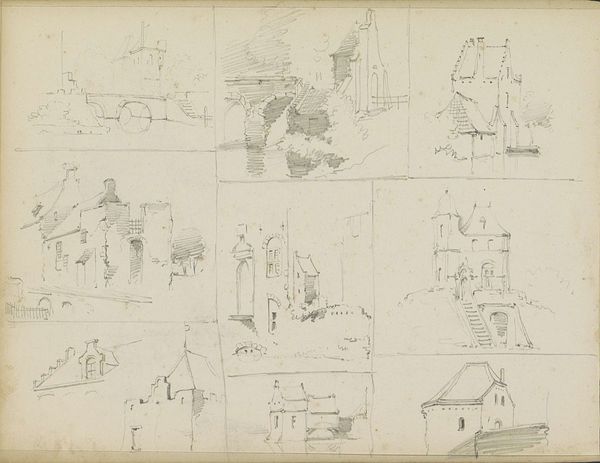 Adrianus Eversen created this study sheet with buildings and cityscapes in the Netherlands in the 19th century. Eversen seems to be interested in the aesthetic qualities of old buildings. He captures the architectural details of buildings, with a sensitivity to light and shadow and their impact on the way we experience a building's presence. The Dutch in the 19th century were known for their pride in their history. They saw the preservation of historical buildings as a way to connect with their national identity. Eversen's drawing reflects a conservative appreciation for the past and the importance of preserving it. He’s not critiquing the art institutions, but rather documenting Dutch cultural heritage. By studying architectural styles and forms, the artist contributed to the growing historical consciousness of the Netherlands. By looking at this artwork, historians can gain insight into the artistic practices, cultural values, and historical consciousness of the Netherlands in the 19th century.