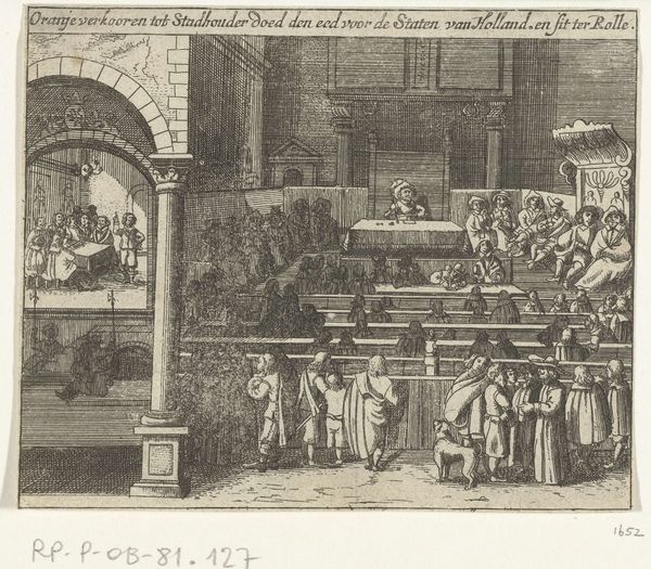 This print shows Frederik Hendrik taking his oath as Stadholder of Holland, made in 1625 by an anonymous artist using engraving. Notice the linear quality, the fineness of the lines, and the overall sense of detail. All these features come from the character of the engraved line. The printmaker would have used a tool called a burin to incise lines directly into a copper plate. Ink is then applied to the plate, and then wiped from the surface, remaining only in the engraved lines. Then, paper is applied, and run through a press. The resulting image is, of course, a mirror image of the original design. The relatively small scale of this print speaks to its function as a widely distributed document, a kind of political communication. Consider the amount of labor involved in making the original engraving, and then multiplied across the edition. It reminds us that even seemingly “minor” art forms like prints have always played a major role in shaping public opinion and consolidating power.