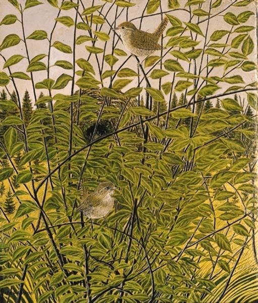 Lucian Freud, born in Berlin but working in Britain, made this painting called *Garden, Notting Hill Gate.* Freud, grandson of Sigmund, lived through the turmoil of the twentieth century, fleeing Nazi Germany with his family. Maybe that's why this garden scene feels so enclosed, a private world of dense greenery. You can almost feel the humid air, the weight of leaves pressing in. Freud was known for his intense, unflinching portraits, often of people he knew intimately. While this painting lacks a human figure, it shares that same quality of close observation and a kind of raw honesty. There’s nothing romantic or idealized here. We are seeing the garden as a space that is maybe overgrown. It reminds us that even in the most cultivated spaces, nature has its own wild, unruly power. What does it mean for a painter known for his portraits to turn his gaze on a garden? Maybe it’s a way of seeing the self reflected in the natural world, or finding a different kind of intimacy in the dense, green world.