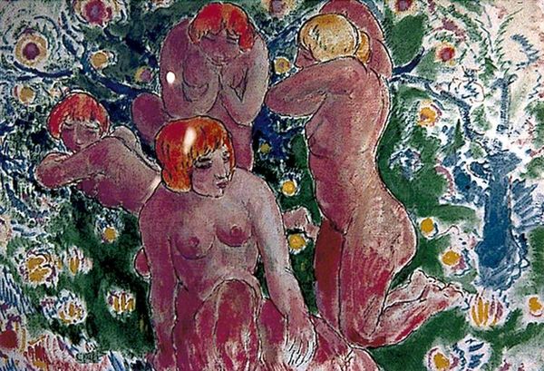 Harry Phelan Gibb’s "Study of Four Women" is a painting of four women from a time when ideas about femininity and representation were rapidly shifting. Gibb lived in a time marked by the suffragette movement, the rise of the ‘New Woman’, and an increased questioning of traditional gender roles. Here, the women are shown in varied states of dress, or undress, against a backdrop that merges natural and abstract elements, which can be read as a rejection of prevailing social norms of the time. Rather than portraying women as idealized figures, Gibb captures a sense of individuality and introspection. The nude figure could be seen as a statement of liberation, challenging conventional perceptions of female beauty and sexuality. Meanwhile the other women, in varied states of dress, seem to be finding comfort in each other. The painting's visual language may express something about the emotional and psychological complexities of women finding agency during an era of change. The effect is one of intimate solidarity.